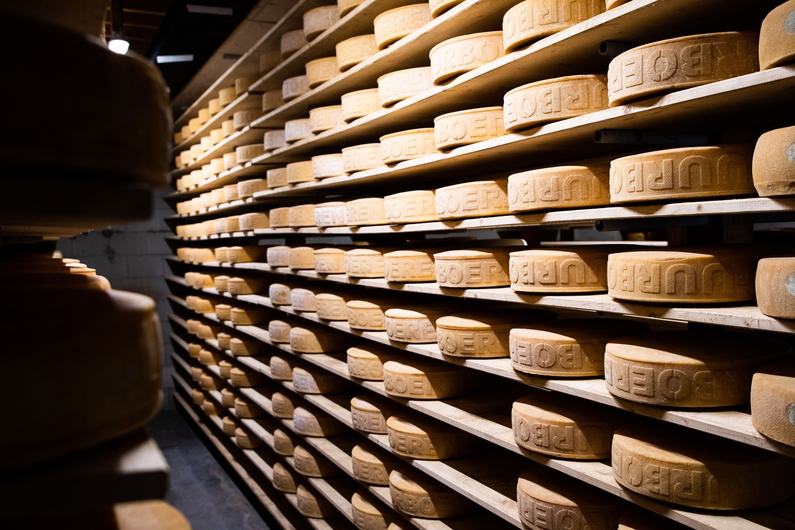 Während der Reifung werden die Käselaibe mehrmals wöchentlich von Hand gewendet und mit Quellwasser und Meersalz gewaschen (gereinigt). Außerdem werden sie im Regal ständig ausgetauscht, sodass alle Käselaibe denselben Reifegrad haben. Sobald der Käse ausreichend gereift ist, sprechen wir von einem erreichten „Punkt“: Der Käse kann die Reiferäume auf dem Weg zu seinem endgültigen Bestimmungsort verlassen.